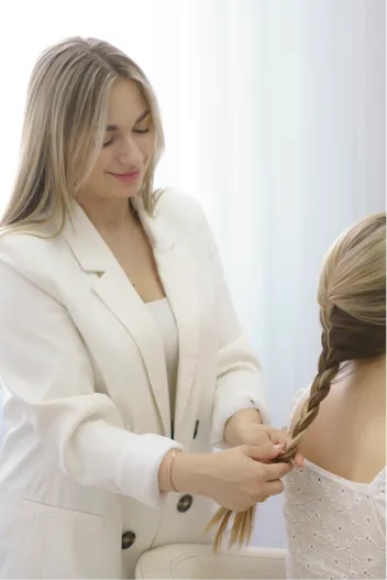From classy updos to funky, detailed, or playful patterns, our team customises each braid for your specific face shape, lifestyle, and desired look. If you are preparing for a special event or want to switch up your everyday style, our braiding experts will help to customise your braid that always looks great – tailored to you and effortlessly chic.